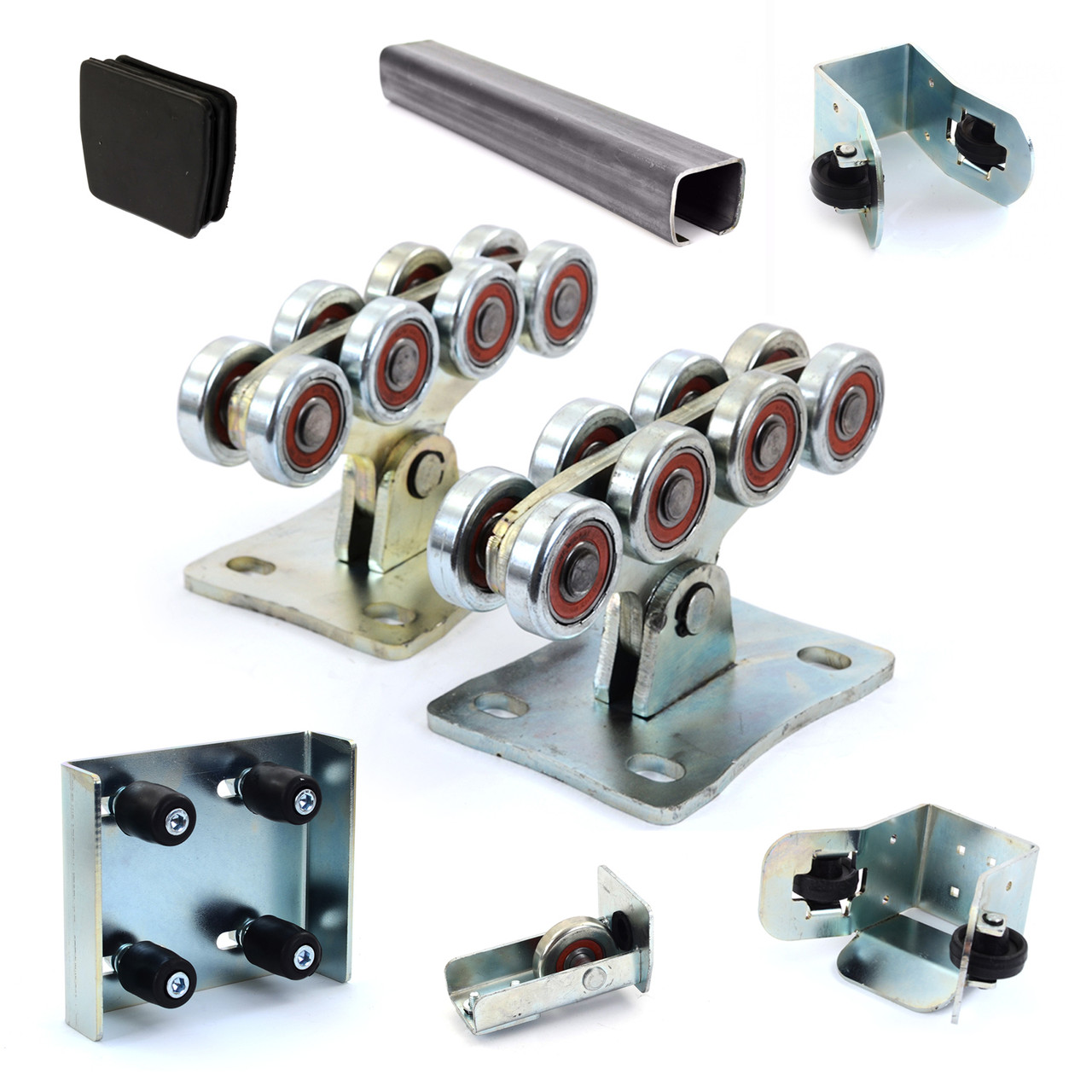 Виробники цієї фурнітури не економлять на якості матеріалів, з яких виробляють комплектуючі. Даний комплект чудово підходить для зсувних воріт, обшитих таким матеріалом, як полікарбонат, профнастил тощо. До нього входить напрямна, яка може мати довжину 5-7 м з максимальною вагою стулки до 600 кг. Направляючу беруть із запасом по довжині. Наприклад 7-метрова рейка підійде для отвору до 5 метрів. Якщо ж у Вас отвір більше 5 м або Ви збираєтеся обшити стулку більш важким матеріалом (деревом, фільонками або важким куванням), то краще взяти фурнітуру для воріт вагою до 800 кг.